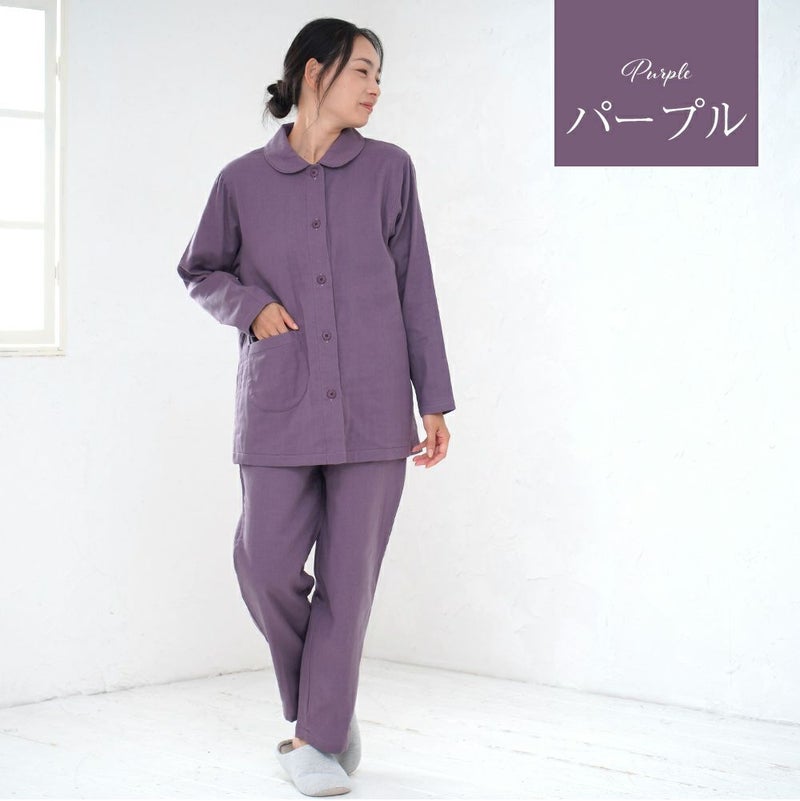 4. レディース パジャマ 長袖 前開き 衿付き 綿100%三重ガーゼ(トリプルガーゼ) 0313