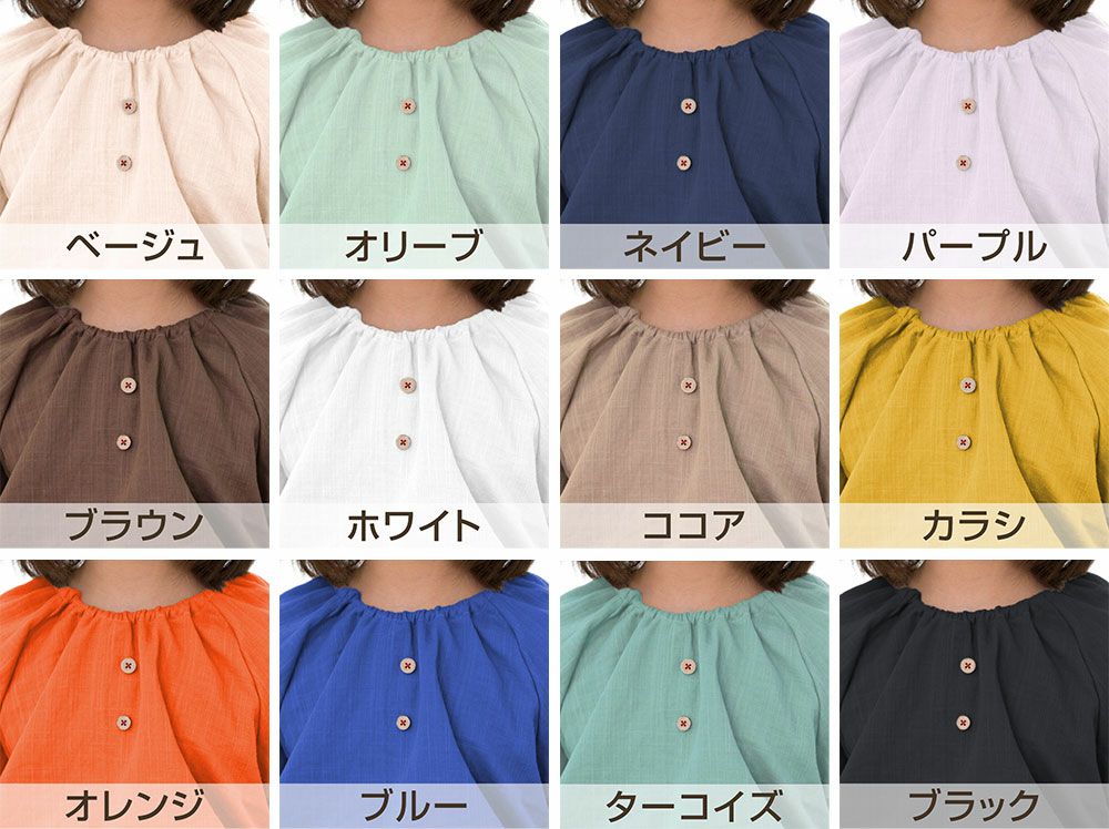 カラー ベージュ、オリーブ、ネイビー、パープル、ブラウン、ホワイト、ココア、カラシ、オレンジ、ブルー、ターコイズ、ブラック