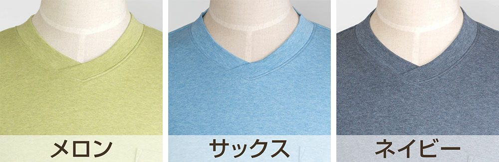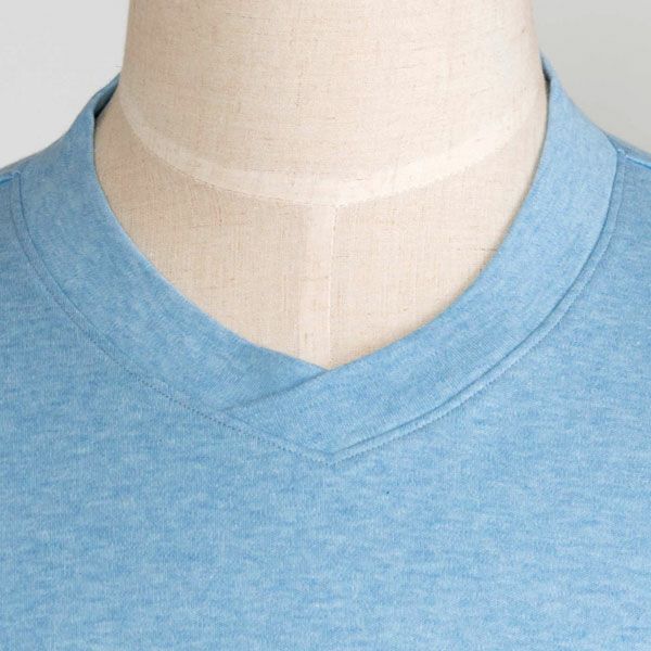 首回りは同素材のリブ。V字になった首元を少しシャープにデザインしました。