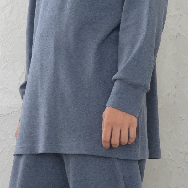 6. メンズ パジャマ 長袖 かぶり Vネック オーガニックコットン100%中厚スムースニット 0912