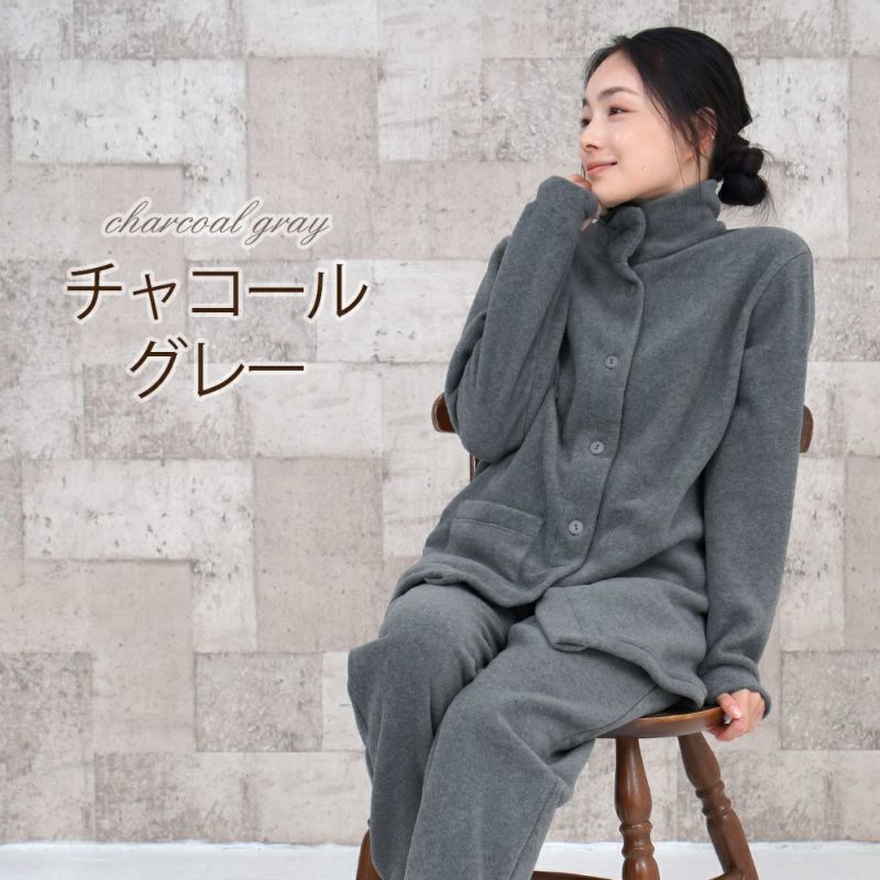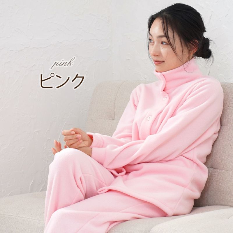 4. レディース パジャマ 長袖 前開き タートルネック 中厚フリース 0923