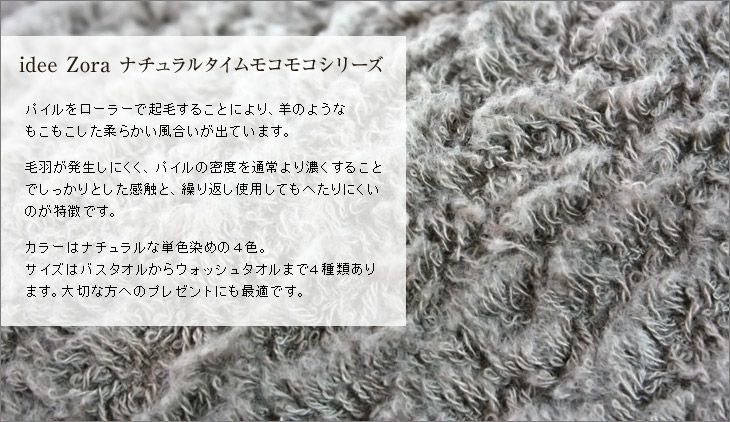 特徴 シンプルでナチュラルなカラー展開が魅力の【idee Zoraイデゾラ】ナチュラルタイムもこもこシリーズ。