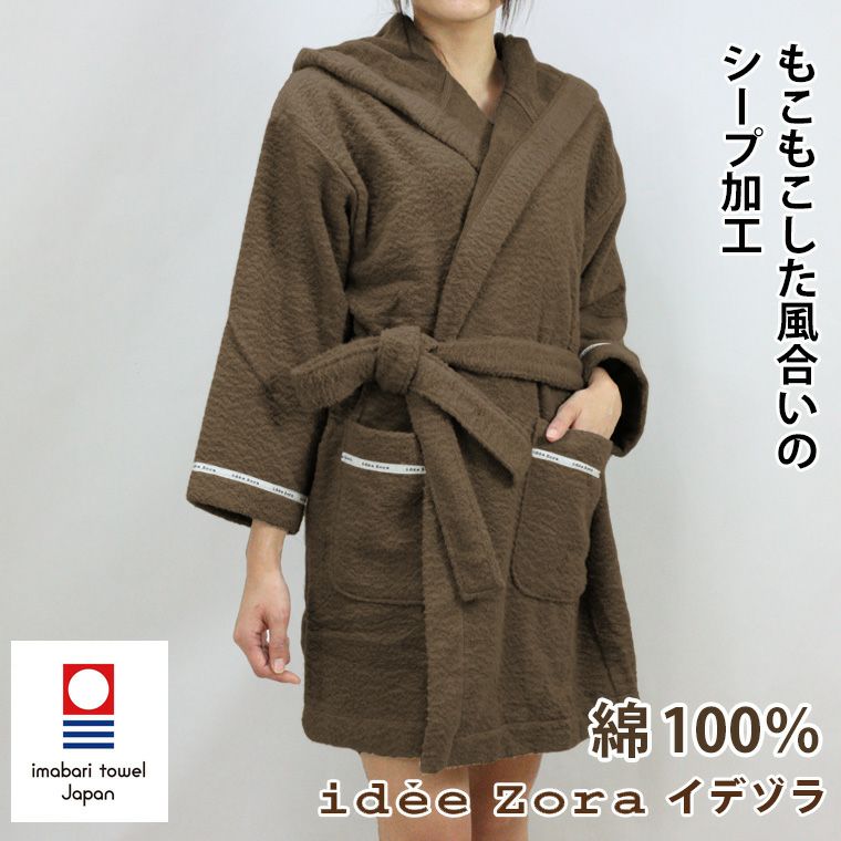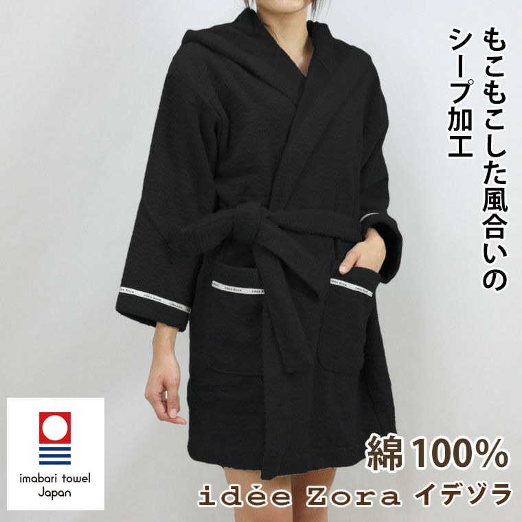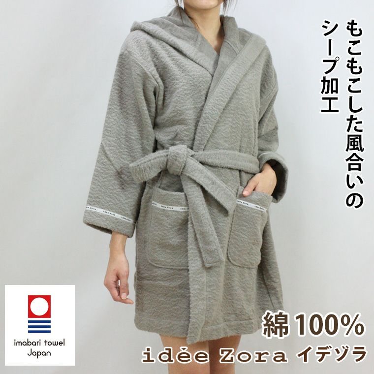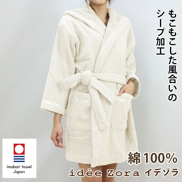 大人気!!フード付きショート丈バスローブ 【idee Zora イデゾラ】 【今治タオル認定商品】[30401]