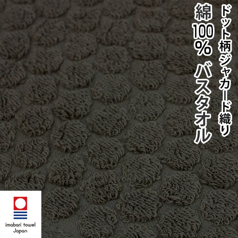 ドット柄ジャカード織り、単色染めのタオルは吸水性もしっかり。肌触りの良さも特長です。