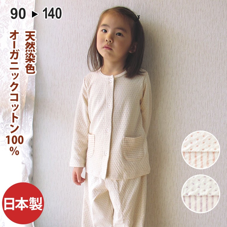 4. 【受注生産商品】子供 パジャマ 長袖 前開き 衿なし [癒しのパジャマシリーズ] オーガニックコットン100%天然染色接結ニット 0380