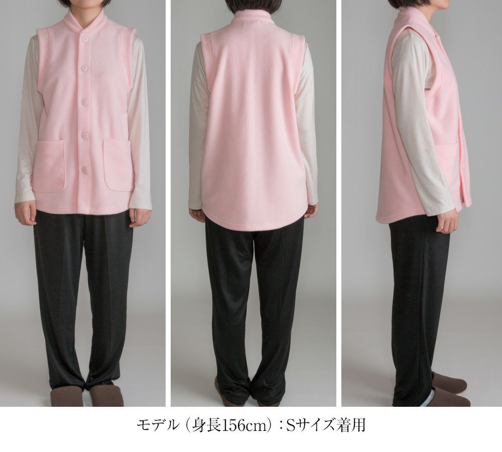 きめ細やかな編みたての両面起毛タイプのフリースベスト。