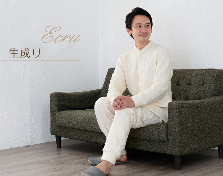 天然繊維の自然な暖かさ メンズ前開きパジャマ