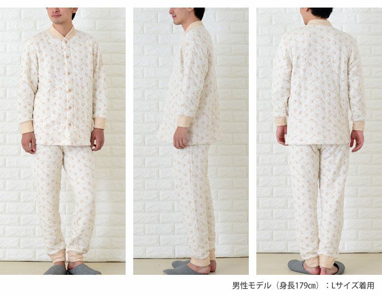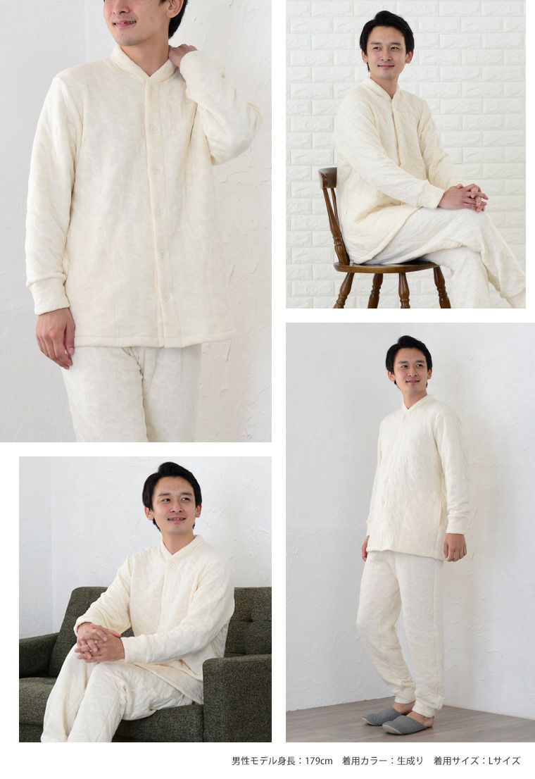 4. メンズ パジャマ 長袖 前開き 衿付き [おくるみパジャマシリーズ] オーガニックコットン中綿入りジャガード 1021