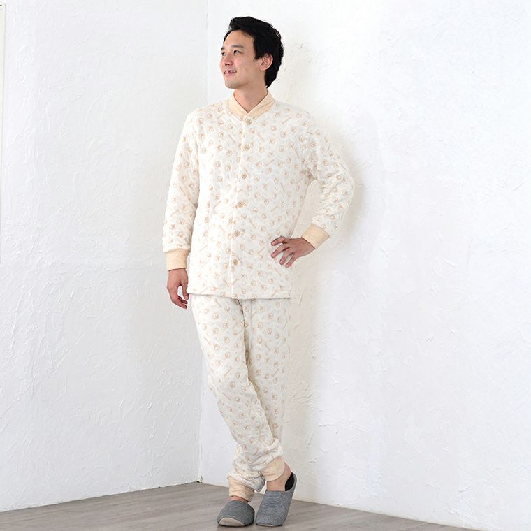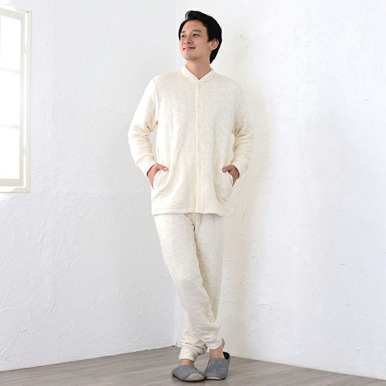 天然繊維の自然な暖かさ メンズ前開きパジャマ
