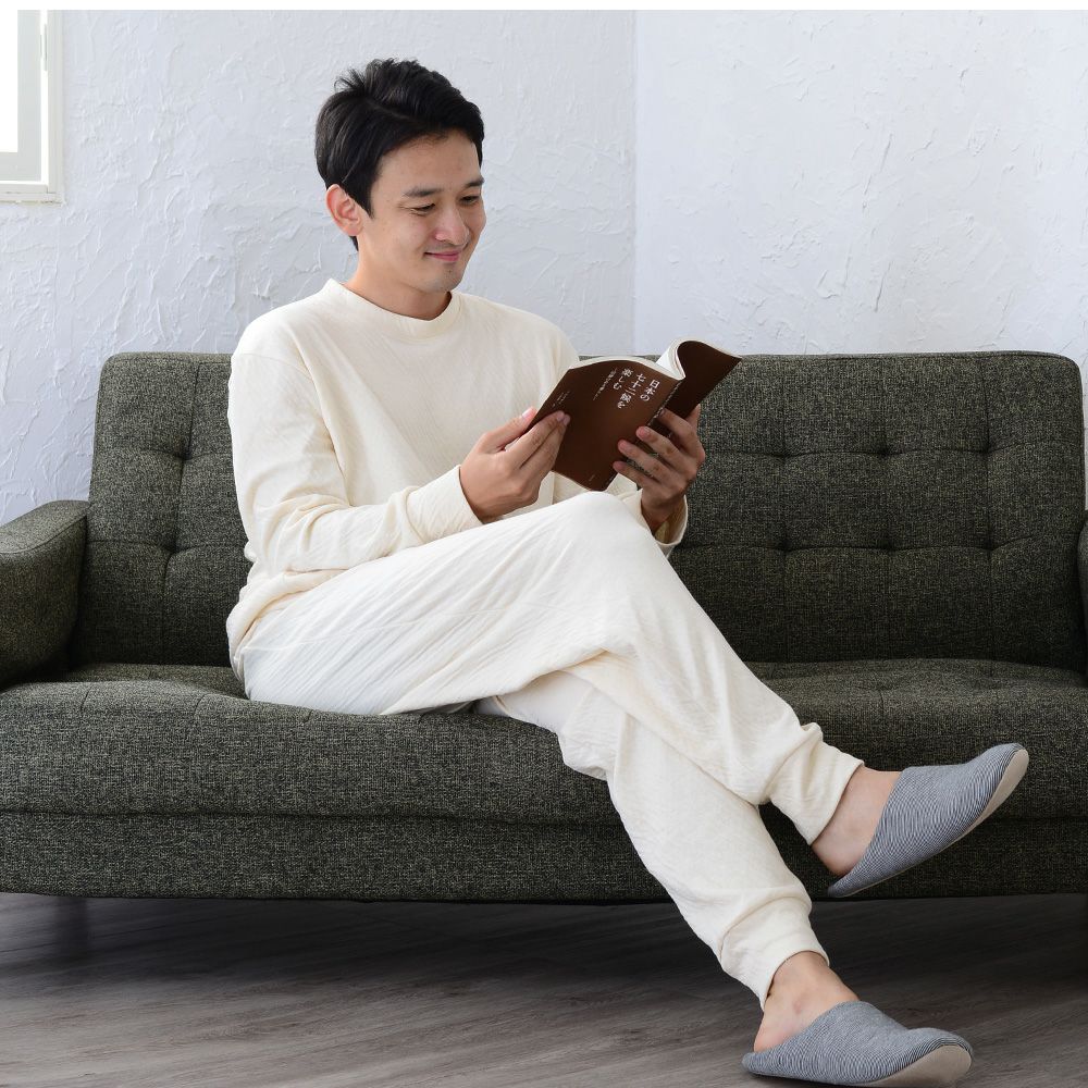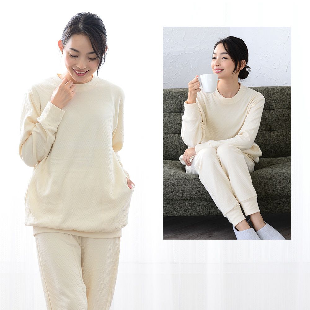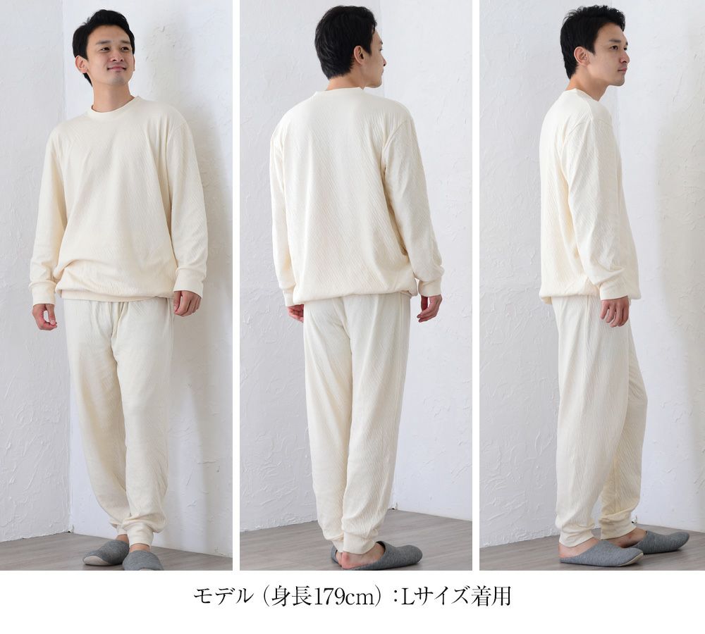 7. メンズ / レディース パジャマ 長袖 かぶり 丸首 [癒しのパジャマシリーズ] オーガニックコットン100%無染色接結ニット 1220