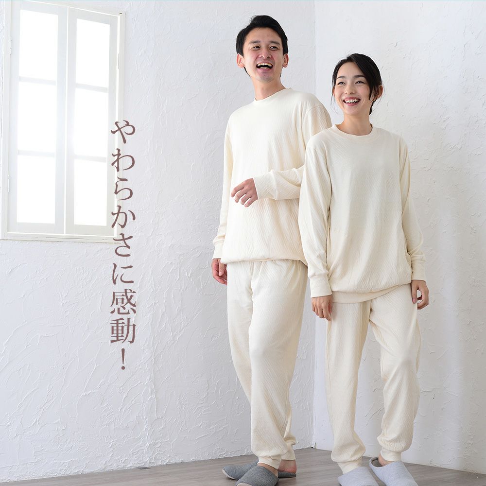 4. メンズ / レディース パジャマ 長袖 かぶり 丸首 [癒しのパジャマシリーズ] オーガニックコットン100%無染色接結ニット 1220
