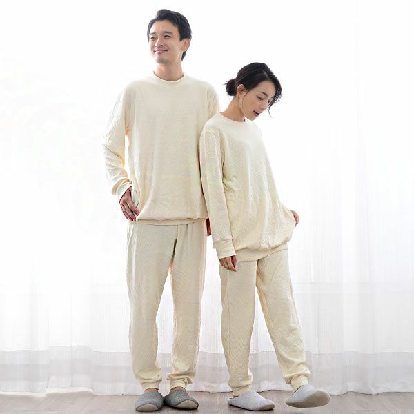 オーガニックコットン無染色接結ニット 男女兼用パジャマ 丸首タイプ