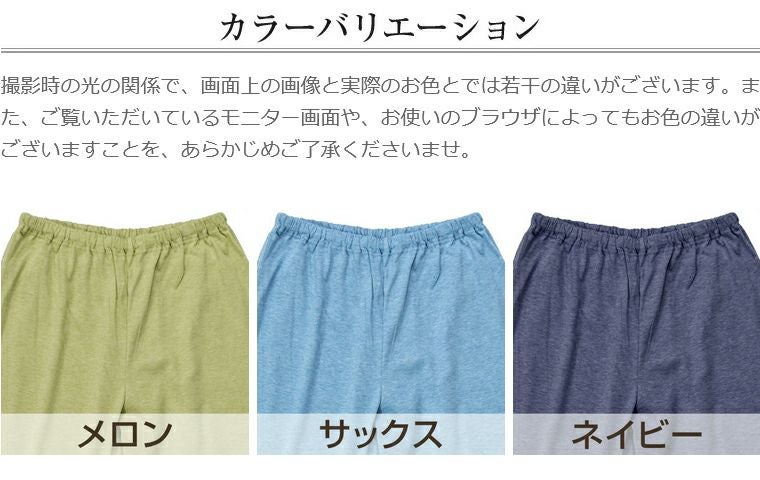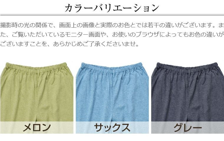 夏用の半袖七分丈パンツのパジャマに、同素材の長ズボンをスペアパンツとして