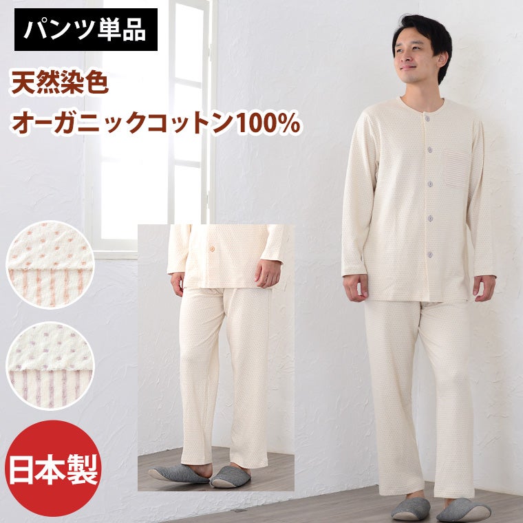 こちらの商品ページは、オーガニックコットン天然染色接結ニット メンズ前開きパジャマ(19130316)のスペアパンツ単品販売のページになります。