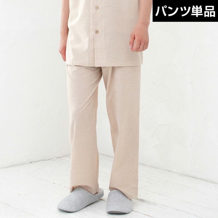 こちらの商品ページは、オーガニックコットン100%先染ガーゼ メンズ前開きパジャマ(19130503)のスペアパンツ単品販売のページになります。