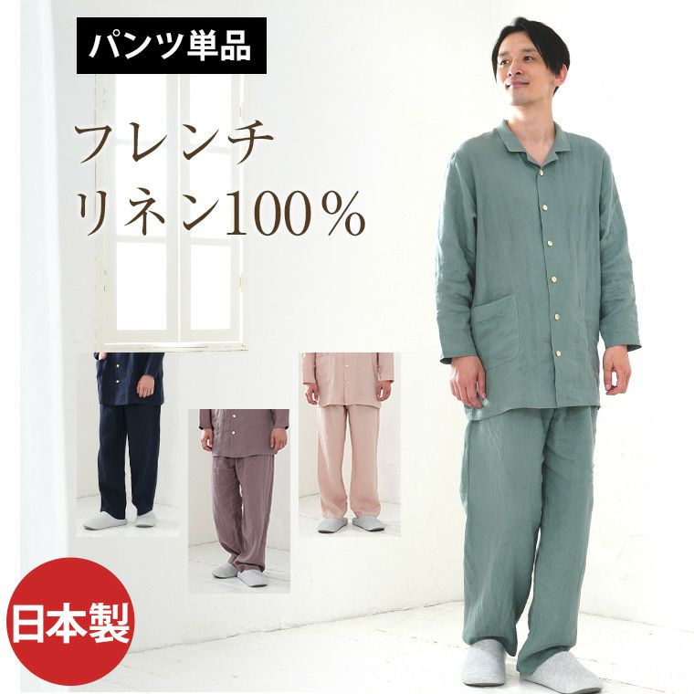 こちらの商品ページは、フレンチリネン100% メンズテーラーカラーパジャマ(19130511)のスペアパンツ単品販売のページになります。