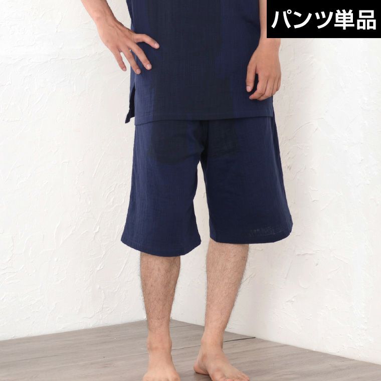 こちらの商品ページは、綿100%スラブダブルガーゼ メンズ半袖かぶりタイプパジャマ(19130504)のスペアパンツ単品販売のページになります。