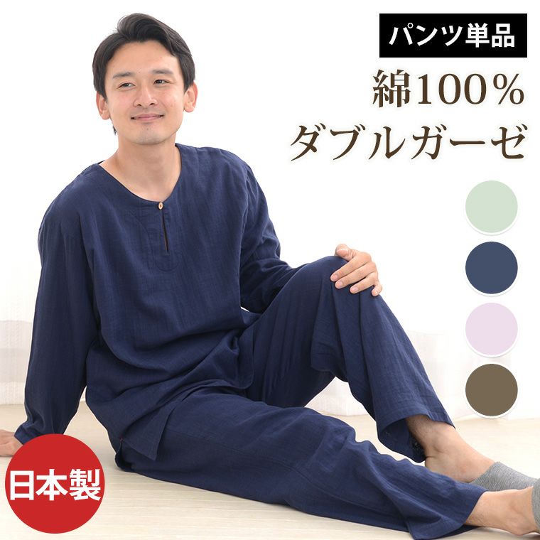 【受注生産商品】パンツのみご要望の方に。入院用の替えパンツ、スリーパーのパンツスタイルにも。パンツ単品でお買い求め頂けます。【メンズ】 【ダブルガーゼ】