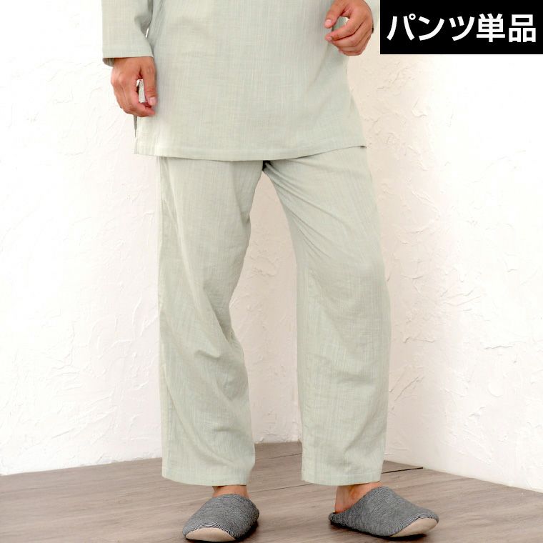 こちらの商品ページは、綿100%スラブダブルガーゼ メンズかぶりタイプパジャマ(19130505)のスペアパンツ単品販売のページになります。