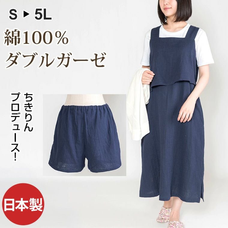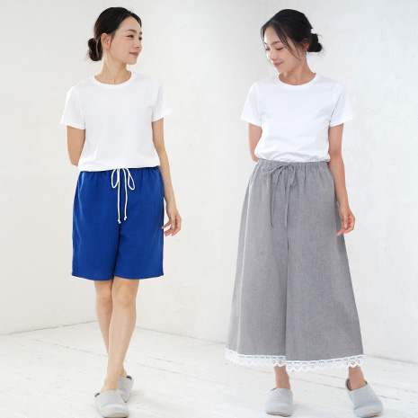 レディース リラックスパンツ ハーフ丈 綿100%二重ガーゼ(ダブルガーゼ) 0707