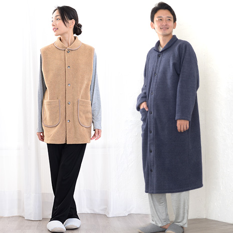 パジャマ工房オリジナルのベスト・ルームウェアは軽くてとてもあたたかです。パンツやワンピースも当ショップオリジナルの商品です。