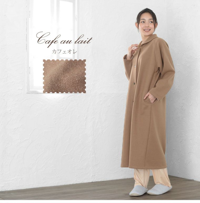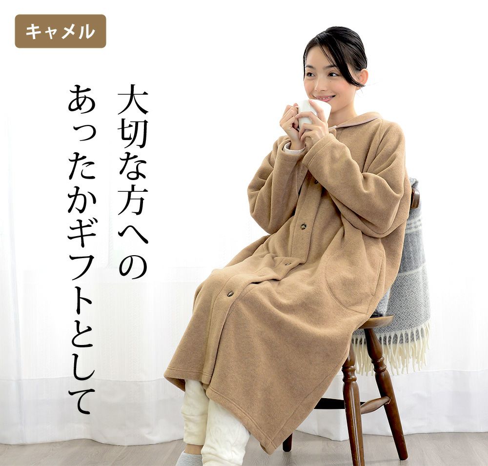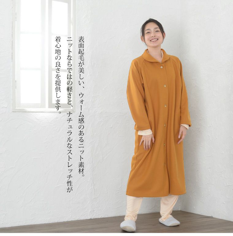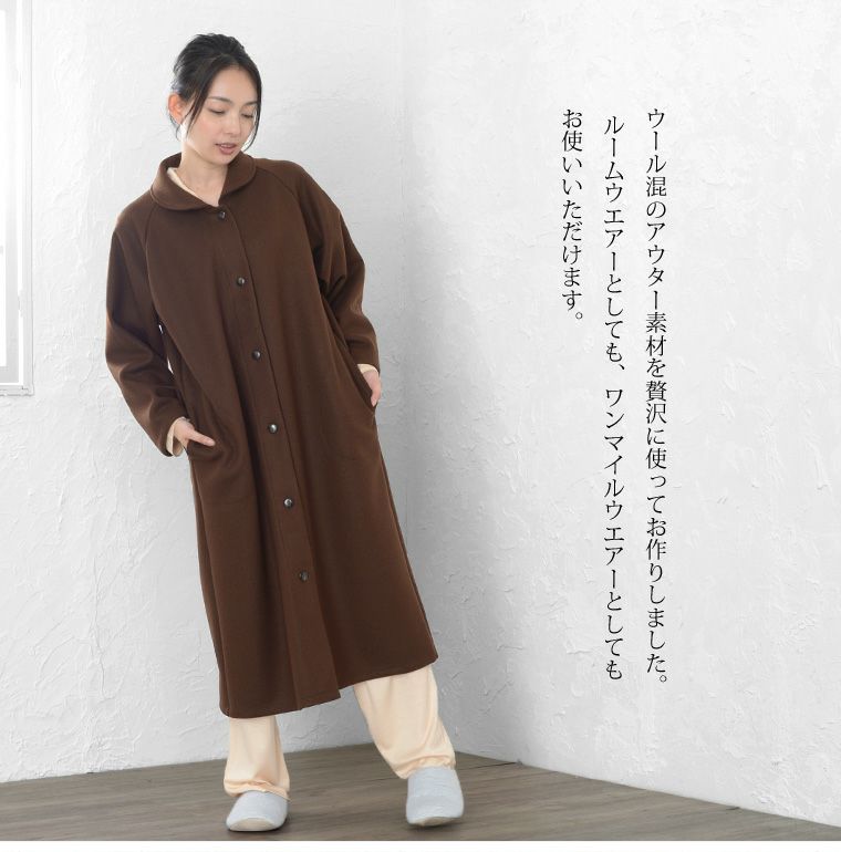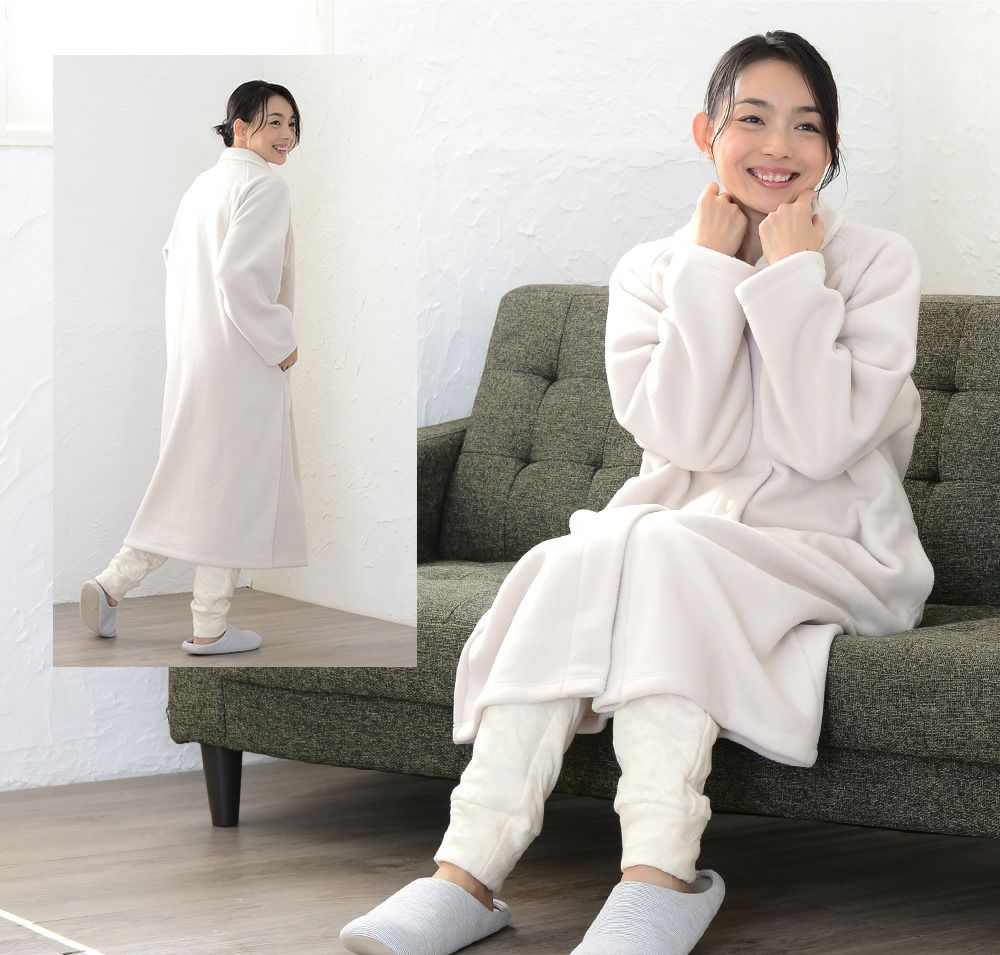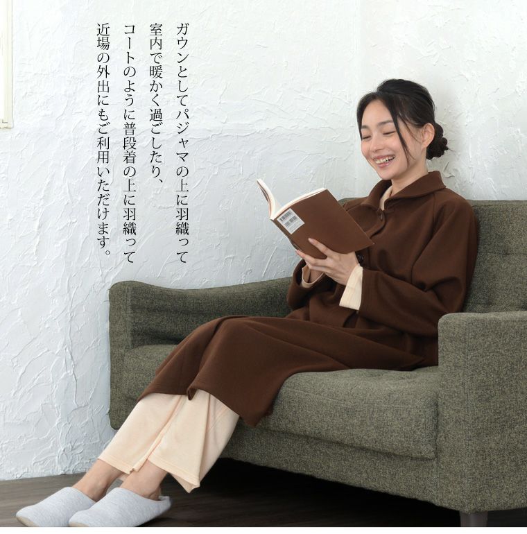 レディース ロングガウン 長袖 前開き 衿付き メルトンフリース 0916