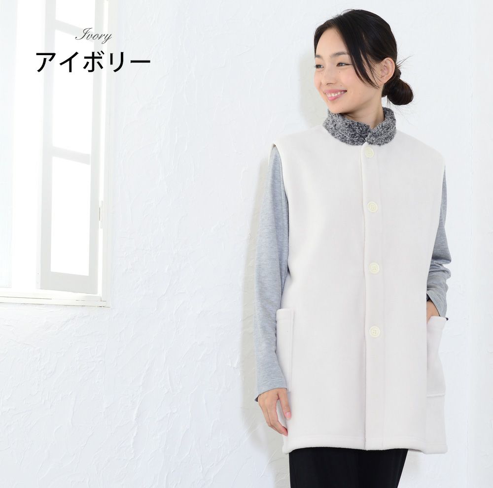 メンズ / レディース ロングベスト 前開き 衿付き メルトンフリース 0932