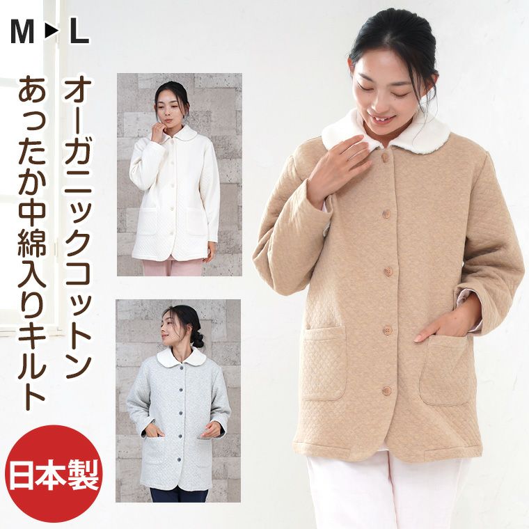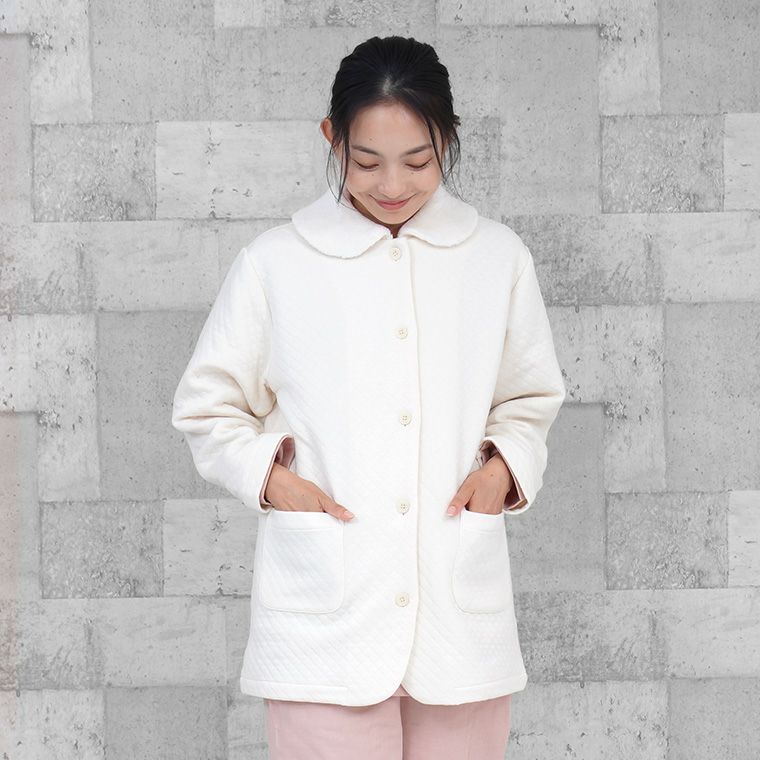 【受注生産商品】レディース ルームジャケット 長袖 前開き 衿付き オーガニックコットンキルティング 1205