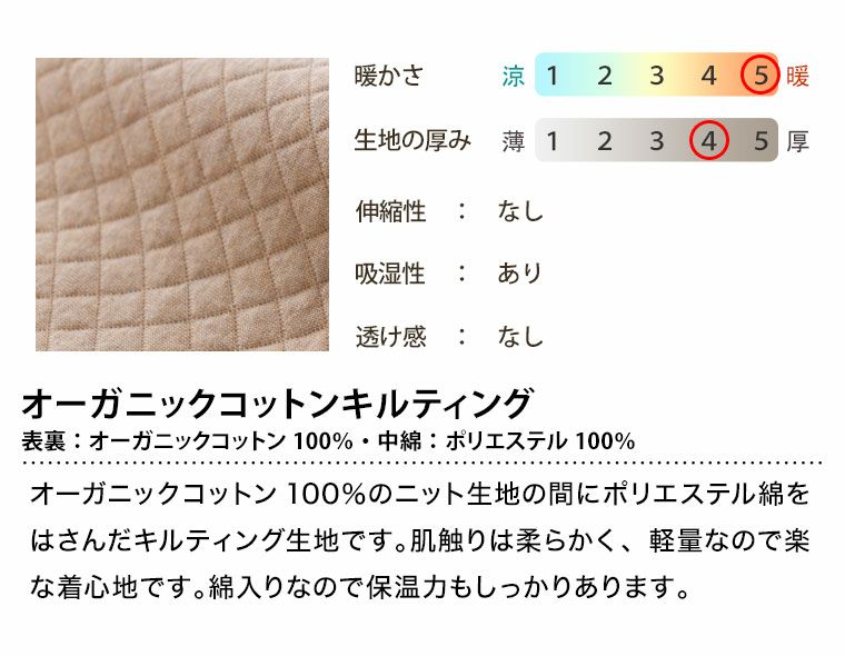 【受注生産商品】レディース ルームパンツ オーガニックコットンキルティング 1206