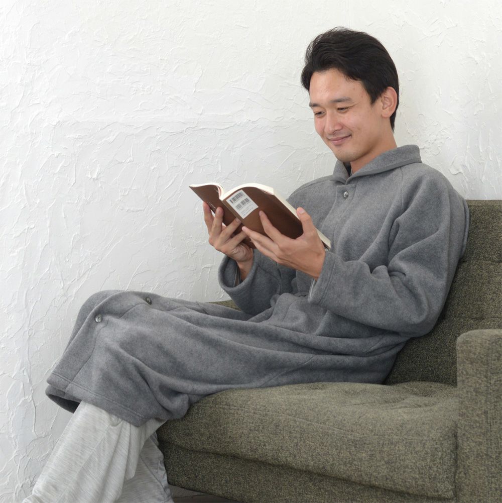 メンズ ロングガウン 長袖 前開き 衿付き メルトンフリース 0917