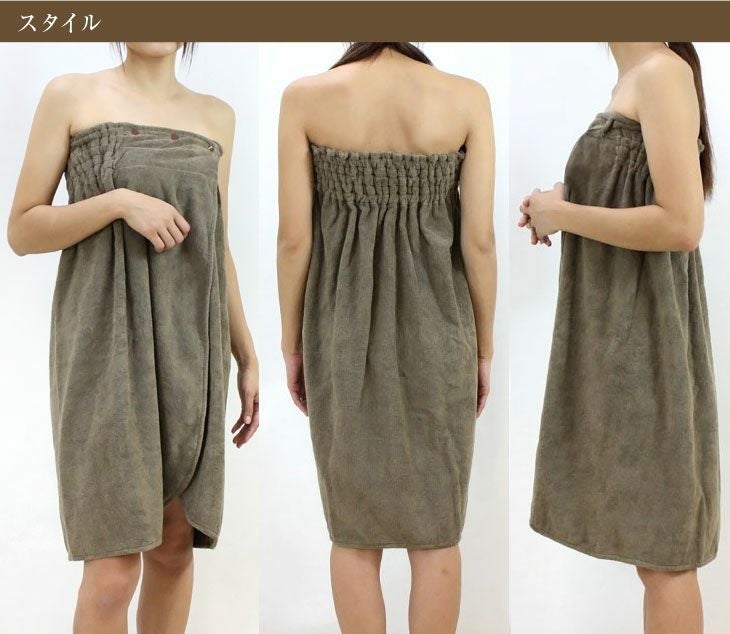肌触りの良いタオル地を贅沢に使った、人気のラップドレスです。