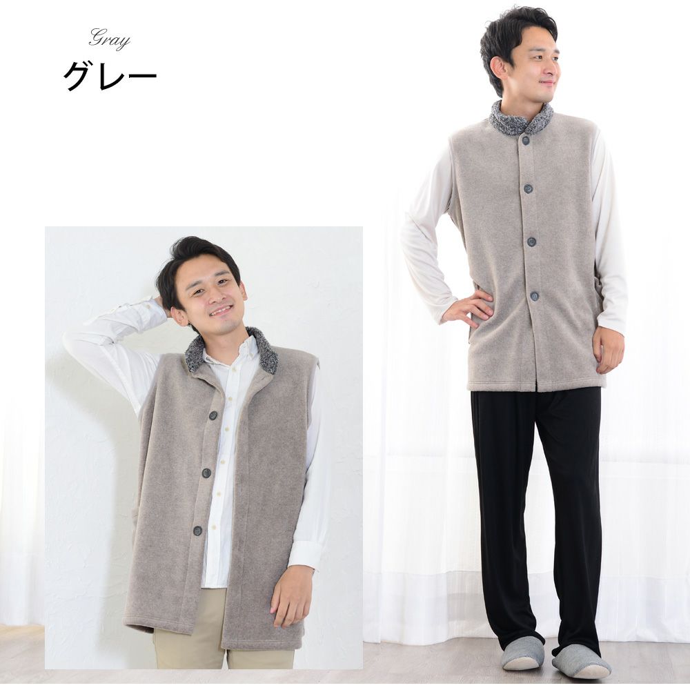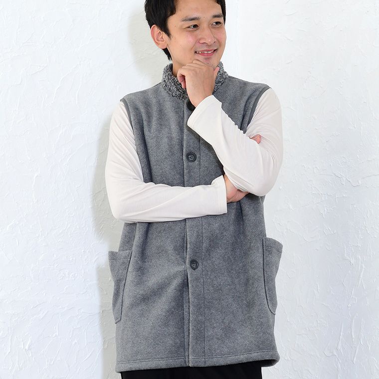 6. メンズ / レディース ロングベスト 前開き ボア付き メルトンフリース 0915