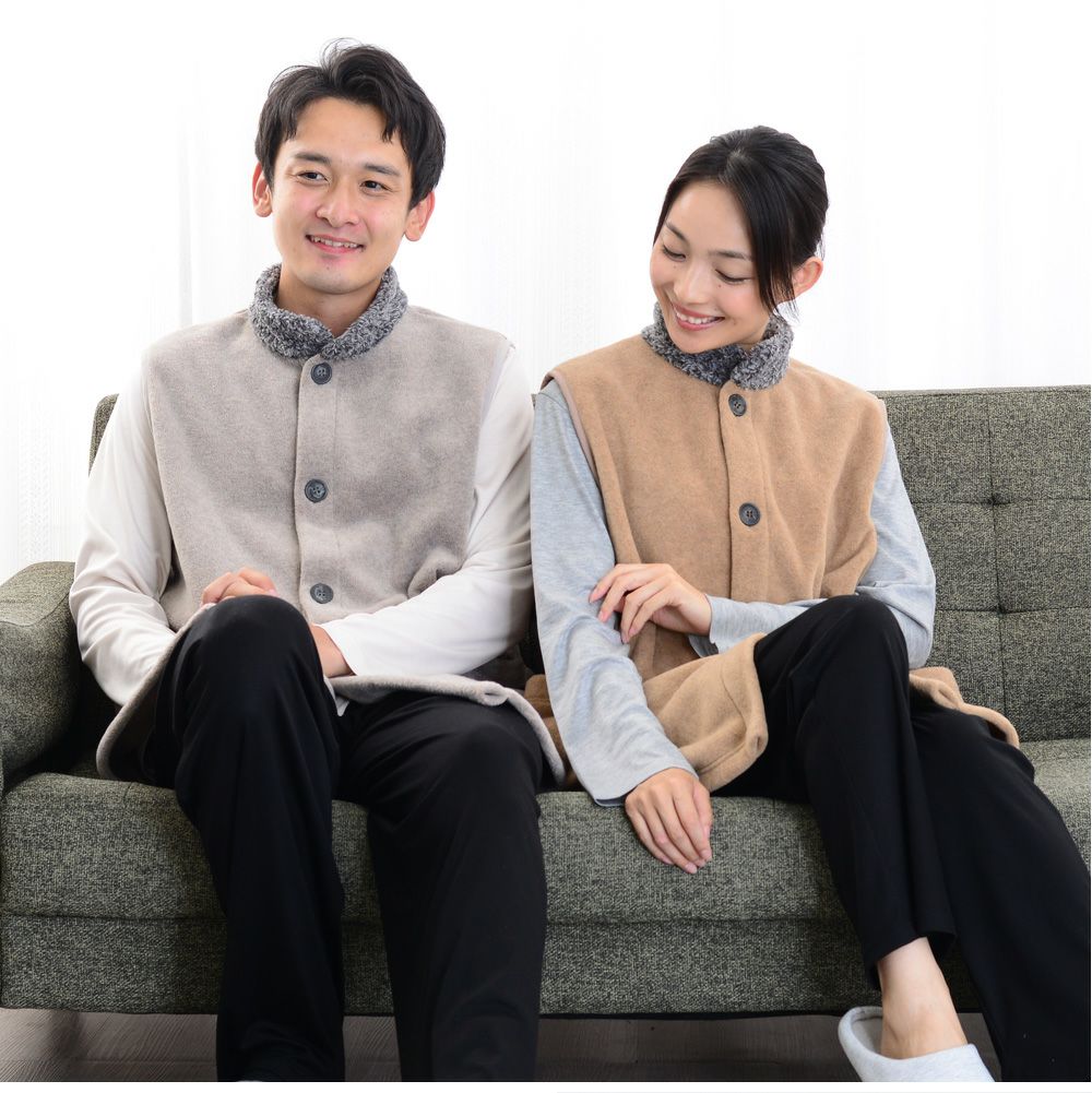 フリースベストは肩から背中、腰回りまでしっかり温まります。
