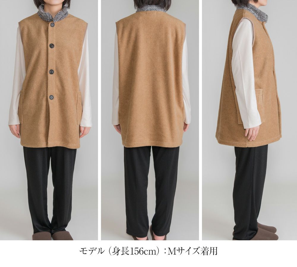 4. メンズ / レディース ロングベスト 前開き ボア付き メルトンフリース 0915