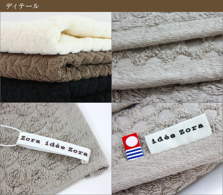 タオルのミミの真ん中についてある"idee Zora"のロゴテープは、フックにも掛けることができてとっても便利。