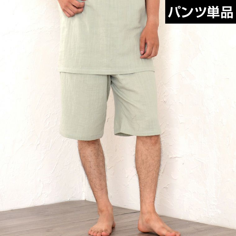 こちらの商品ページは、綿100%スラブダブルガーゼ メンズ半袖かぶりタイプパジャマ(19130504)のスペアパンツ単品販売のページになります。