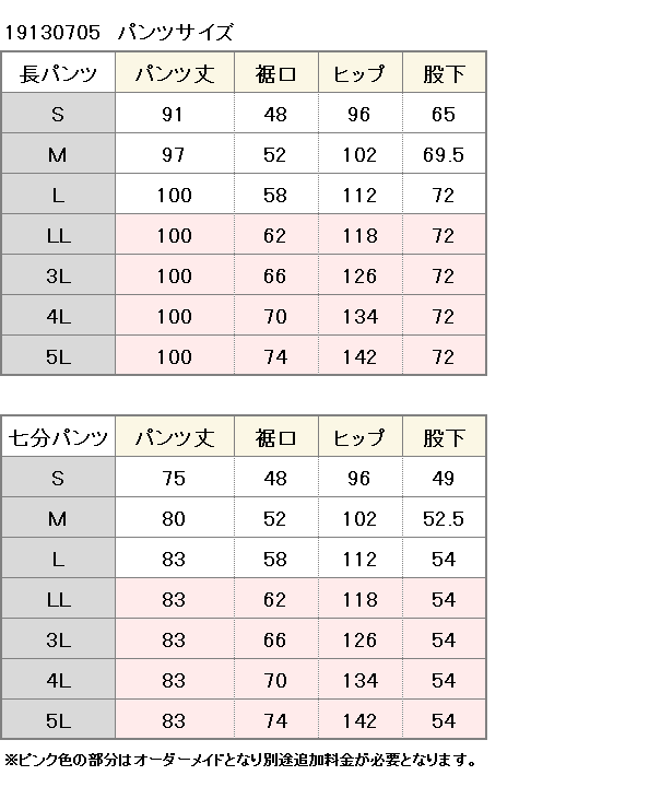 サイズ S M L(レディース)オーダーメイド(別注)LL 3L 4L 5L