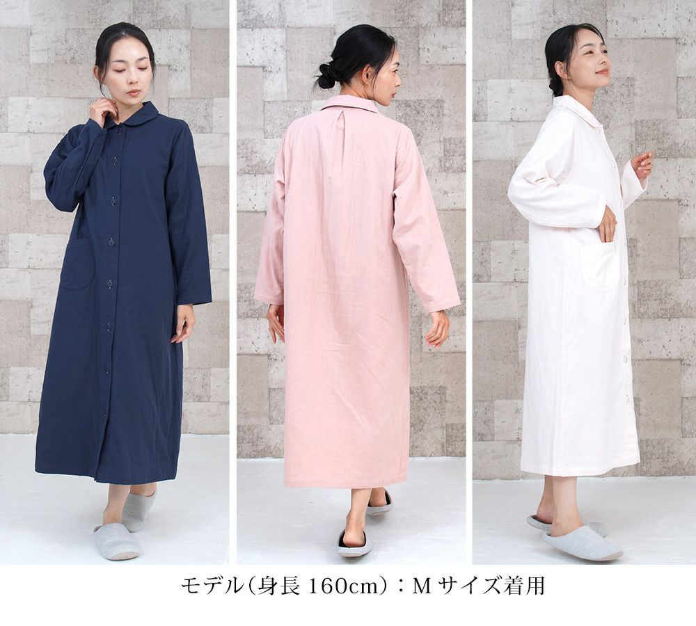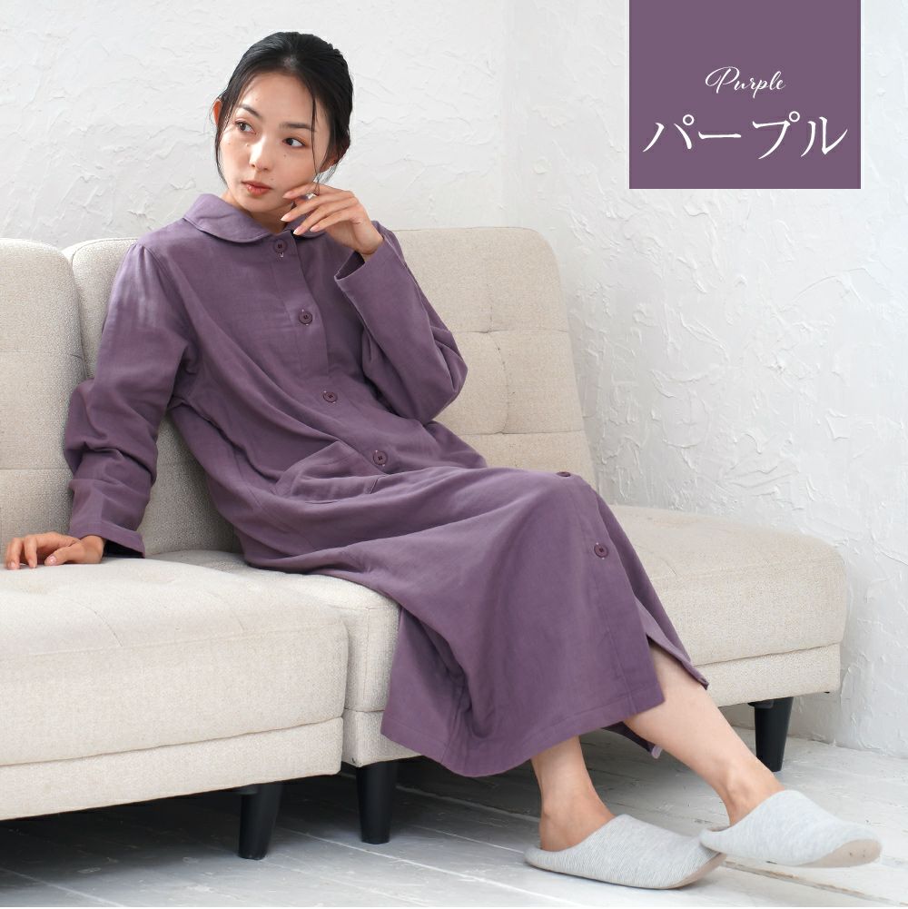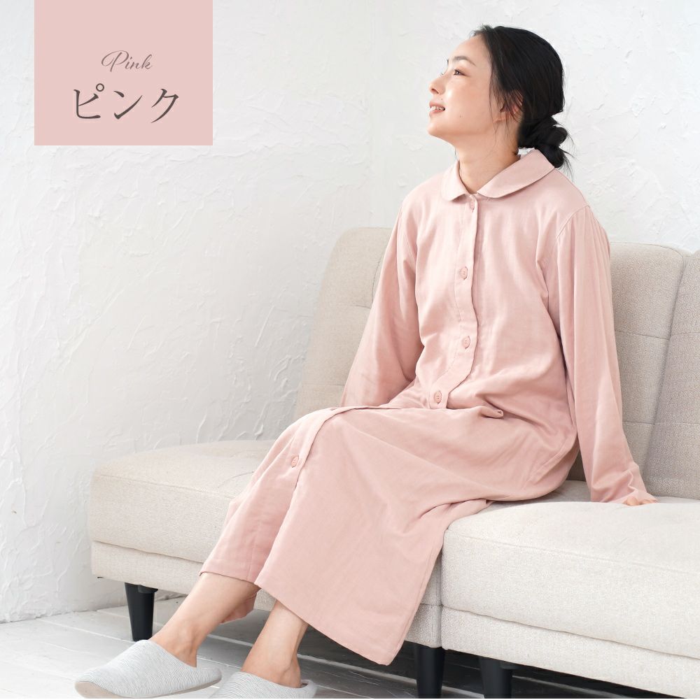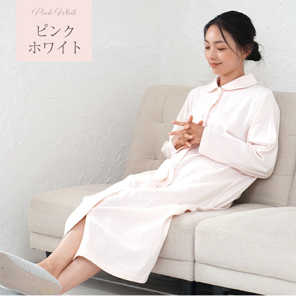 4. レディース ネグリジェ 長袖 前開き 綿100% 三重ガーゼ(トリプルガーゼ) 0761