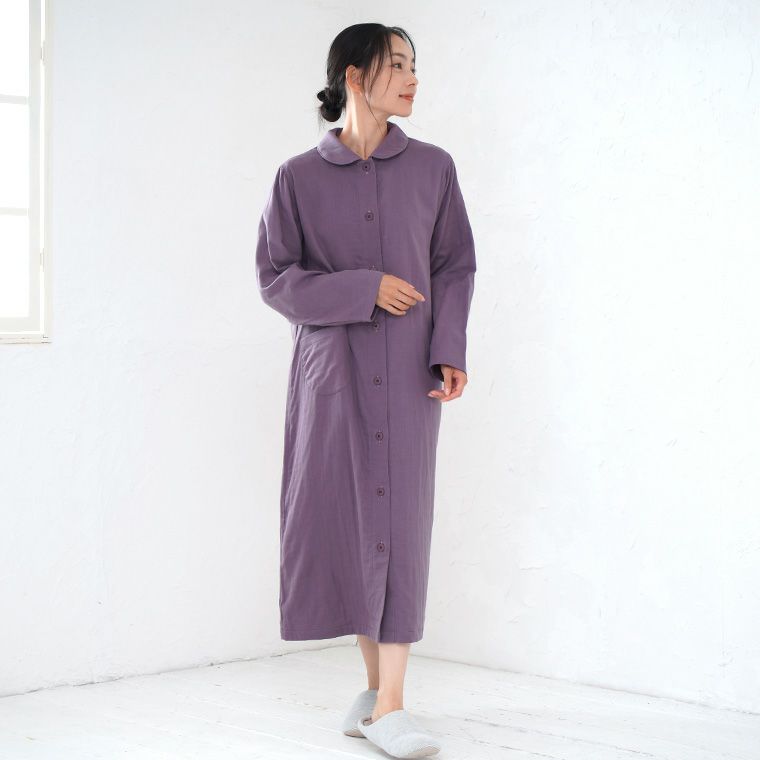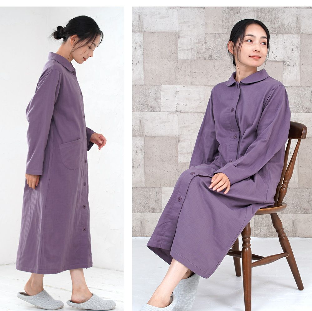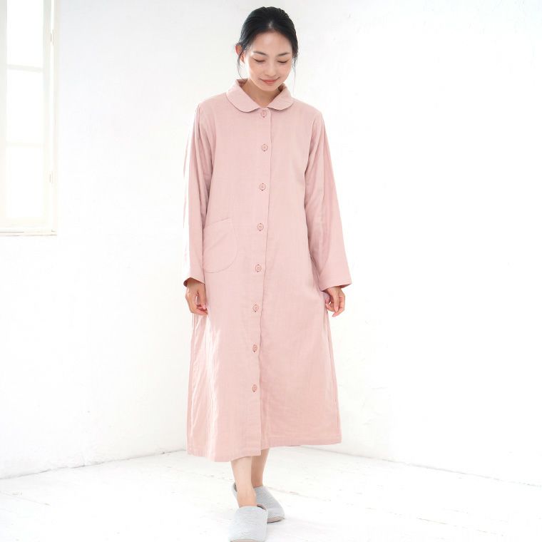 5. レディース ネグリジェ 長袖 前開き 綿100% 三重ガーゼ(トリプルガーゼ) 0761