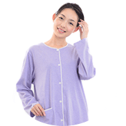 天竺ニットよりも厚みのある、しっかりした目の詰まった生地です。なめらかな肌触りでお肌の敏感な方からも好評を頂いております。保温力があるので寒い時期にも着ていただけます。