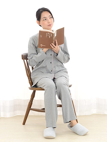 伸縮性があり、動きやすいニット素材のパジャマ。Tシャツや下着によく使われる薄地の天竺素材です。さらりとした心地よい肌触り。